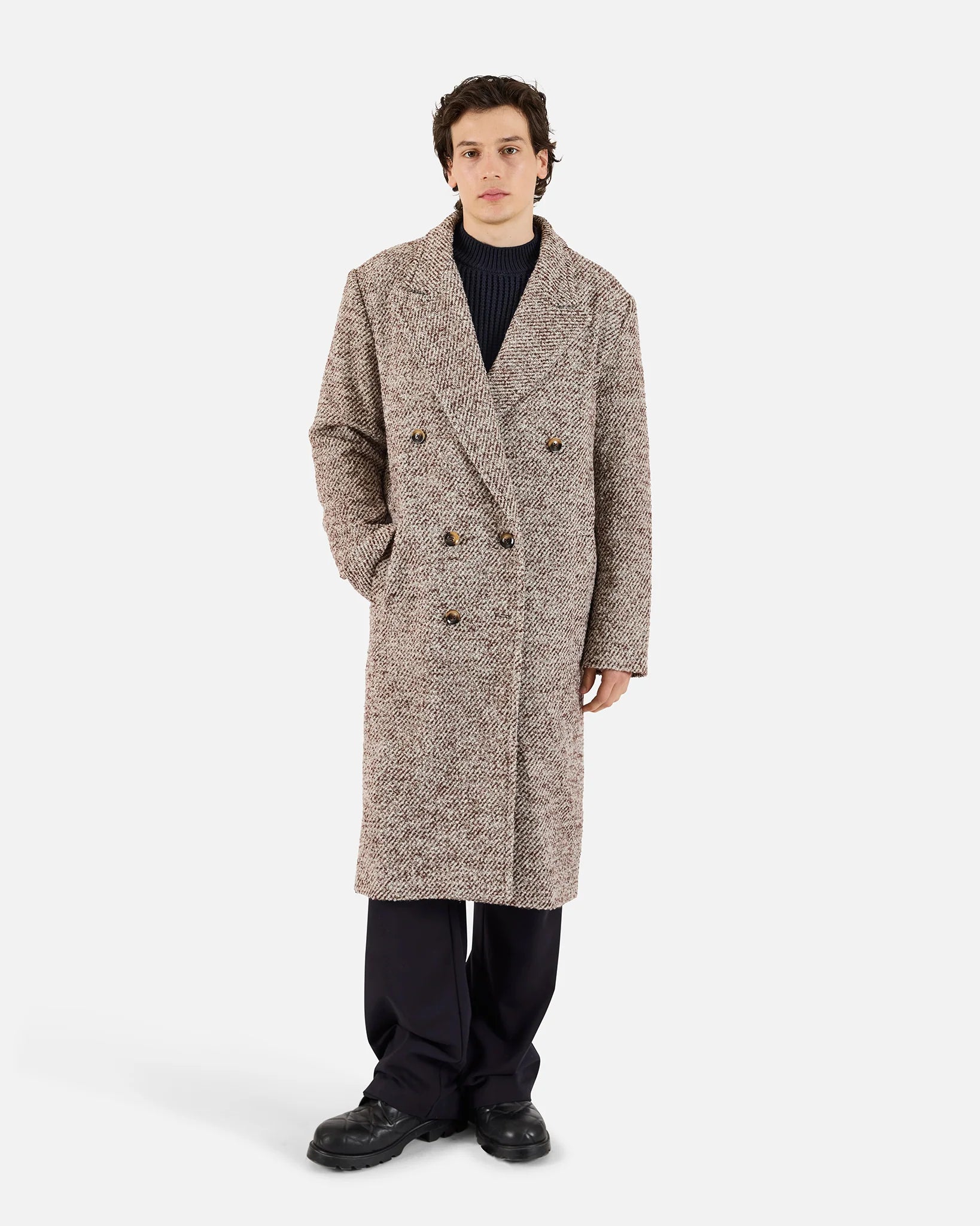 A modern take on a timeless silhouette. The Elliot Wool Overcoat in Sepia Rose features a double-breasted front and notched lapel for a refined fit. The overcoat is fully lined, finished with interior and exterior welt pockets and a center back vent for ease of movement.