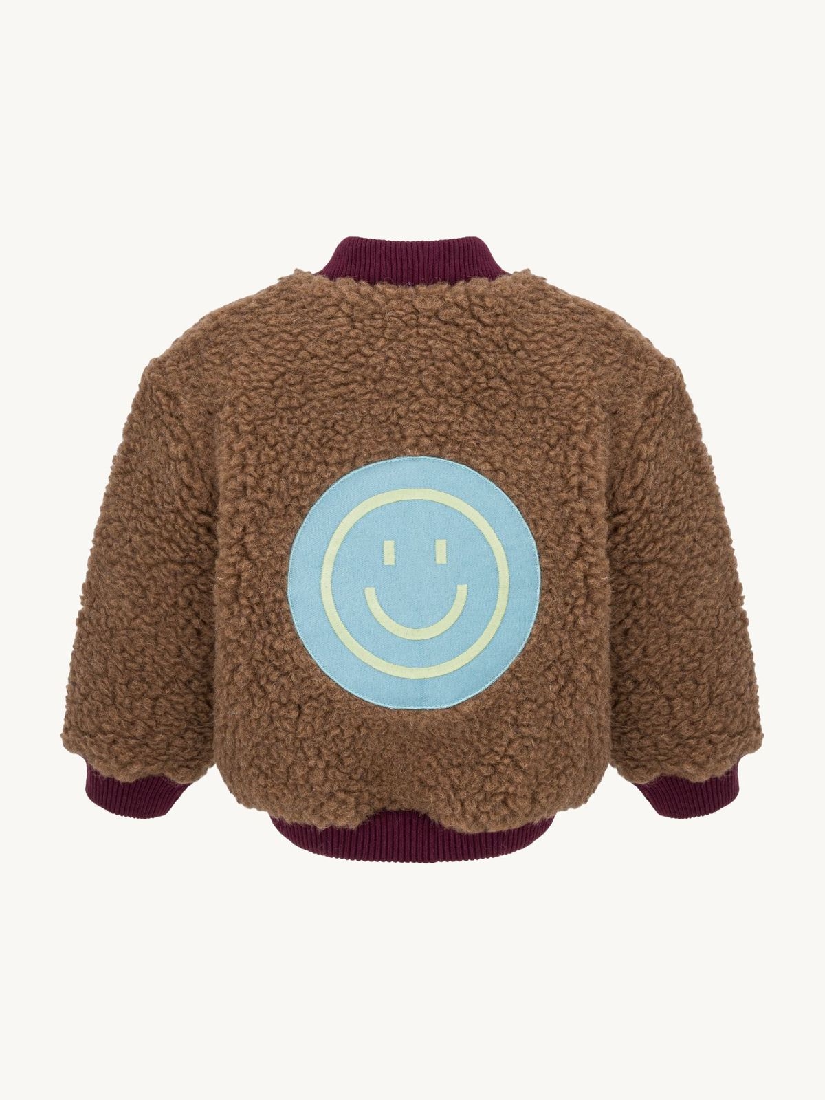 Oversized bomber jacket made from 100% merino wool, which has thermoregulating properties and is perfect for autumn and winter. It has two internal front pockets, a zipper and contrasting ribbed cuffs. Made in Poland.