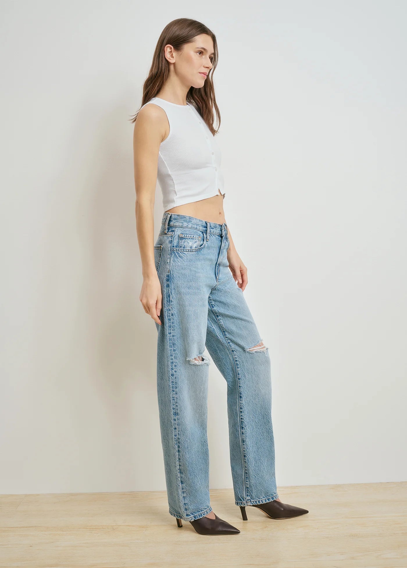 A relaxed boyfriend jean that's easy at the waist and low slung at the hips for a long and loose fit.