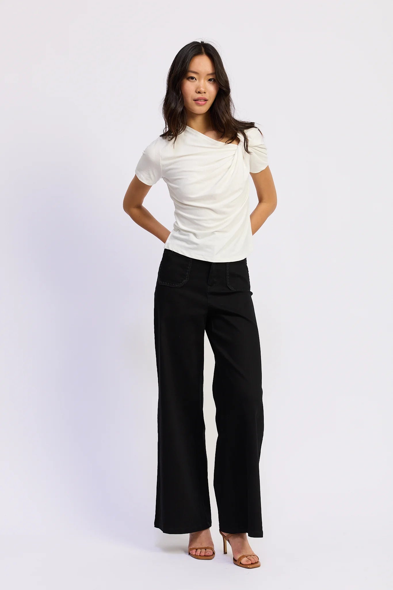 Asymmetric Twist Neckline Short Sleeve