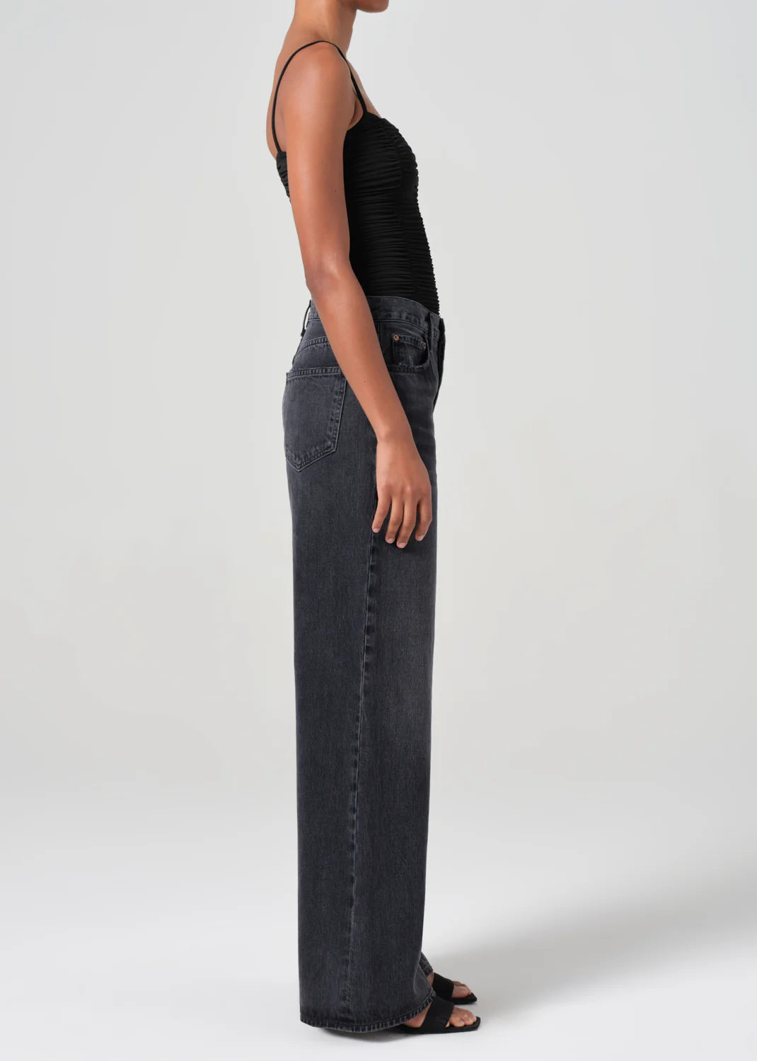 Looks Like: Washed black denim with whiskering