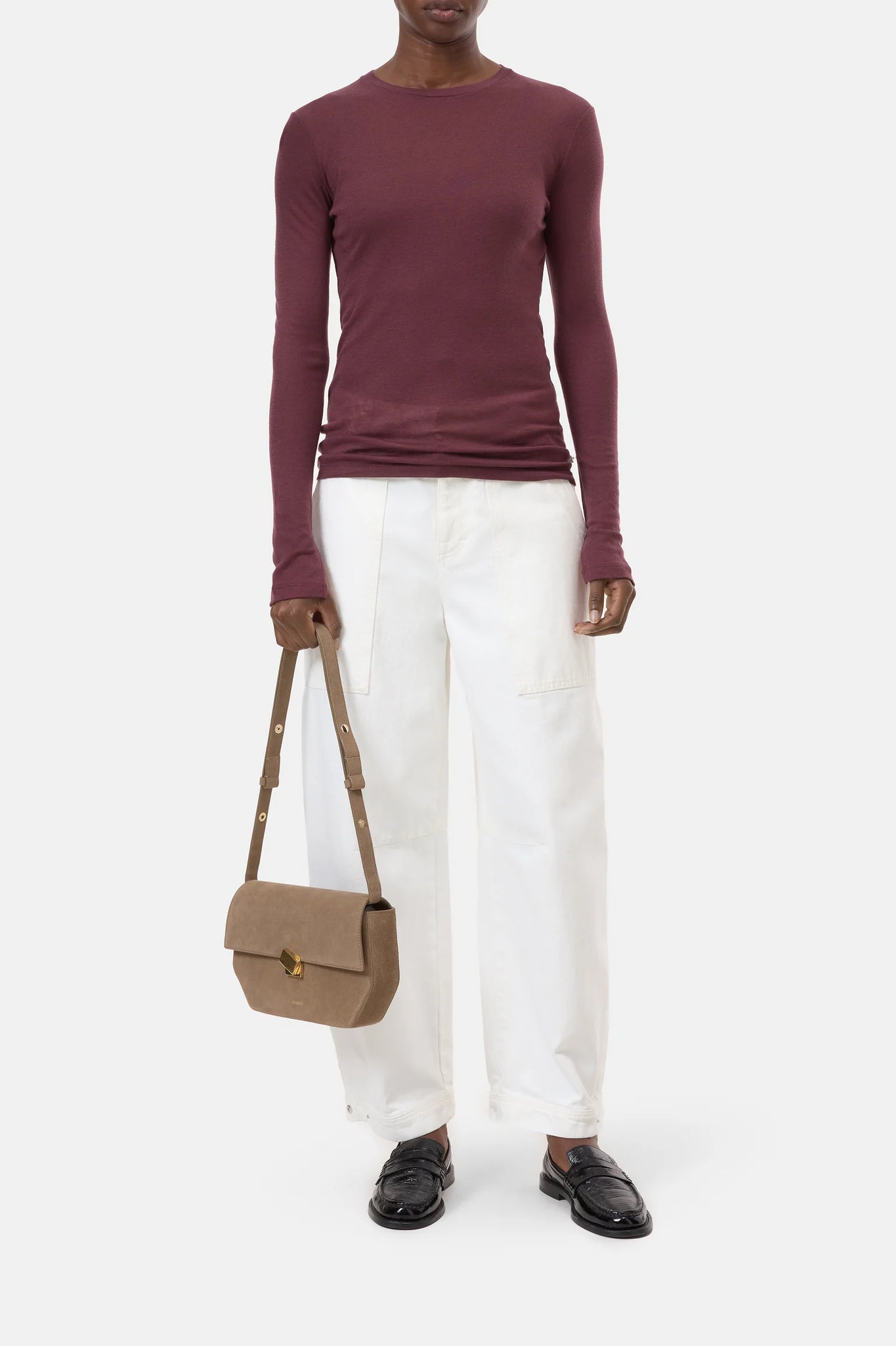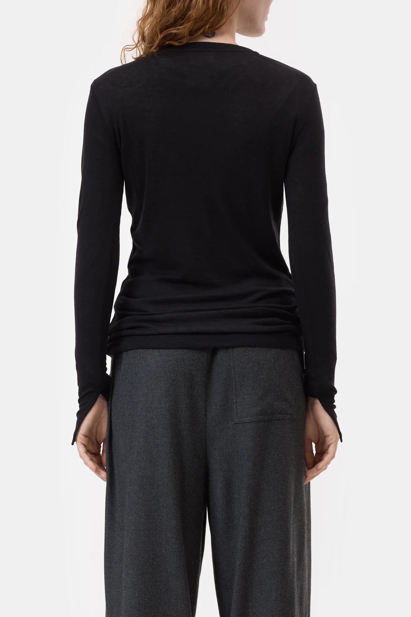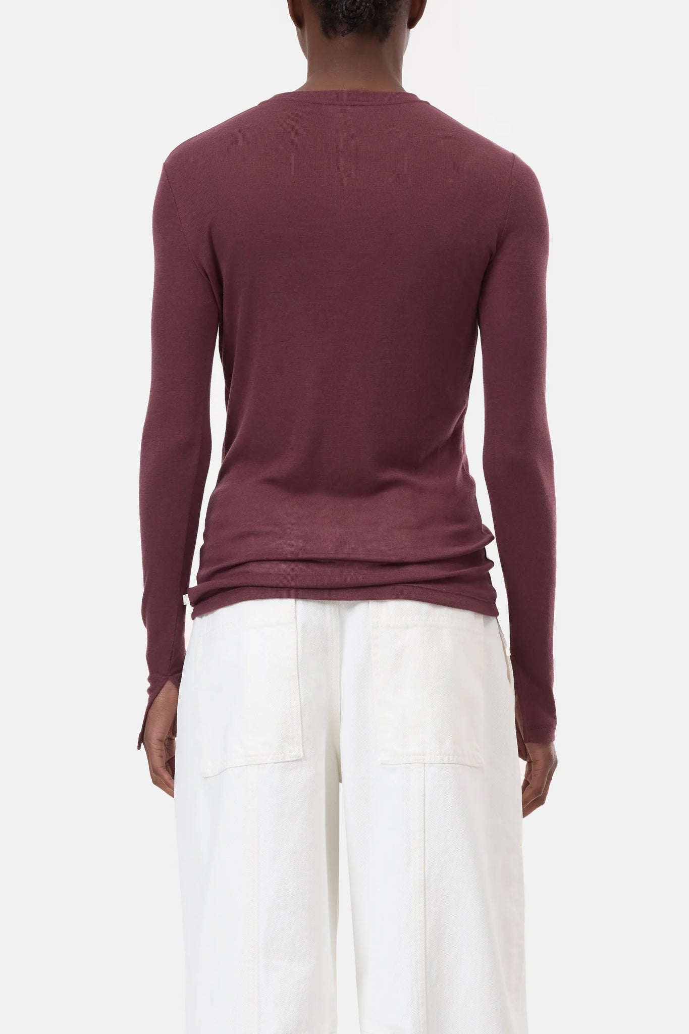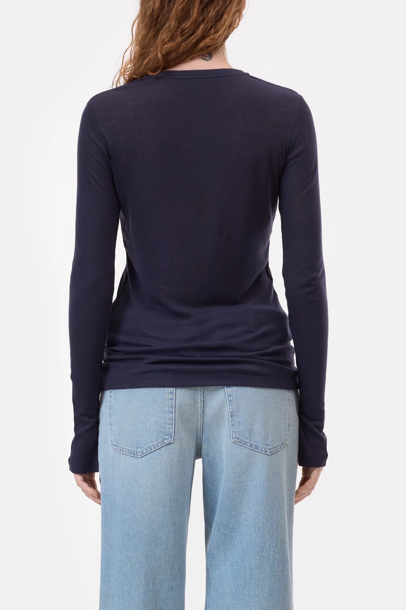 This long sleeve top with a round neckline is made from soft, finely ribbed jersey. The blend of lyocell and wool ensures a pleasant feel and a warming effect on the skin. It has a close-fitting cut and a straight hemline.