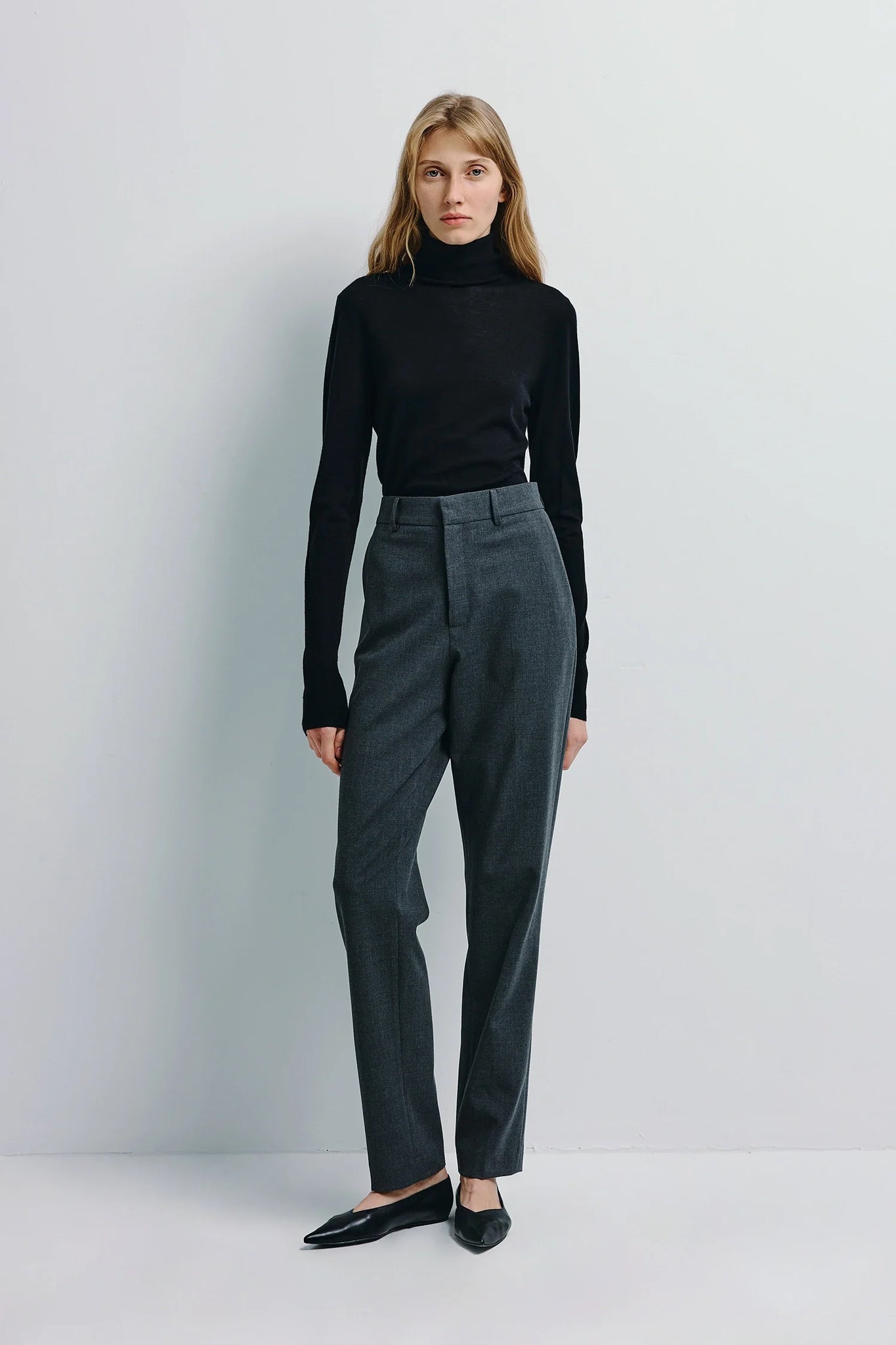 Slim-leg pant in a refined stretch blend, tailored with a sleek waist closure, offering versatile polish and everyday sophistication.